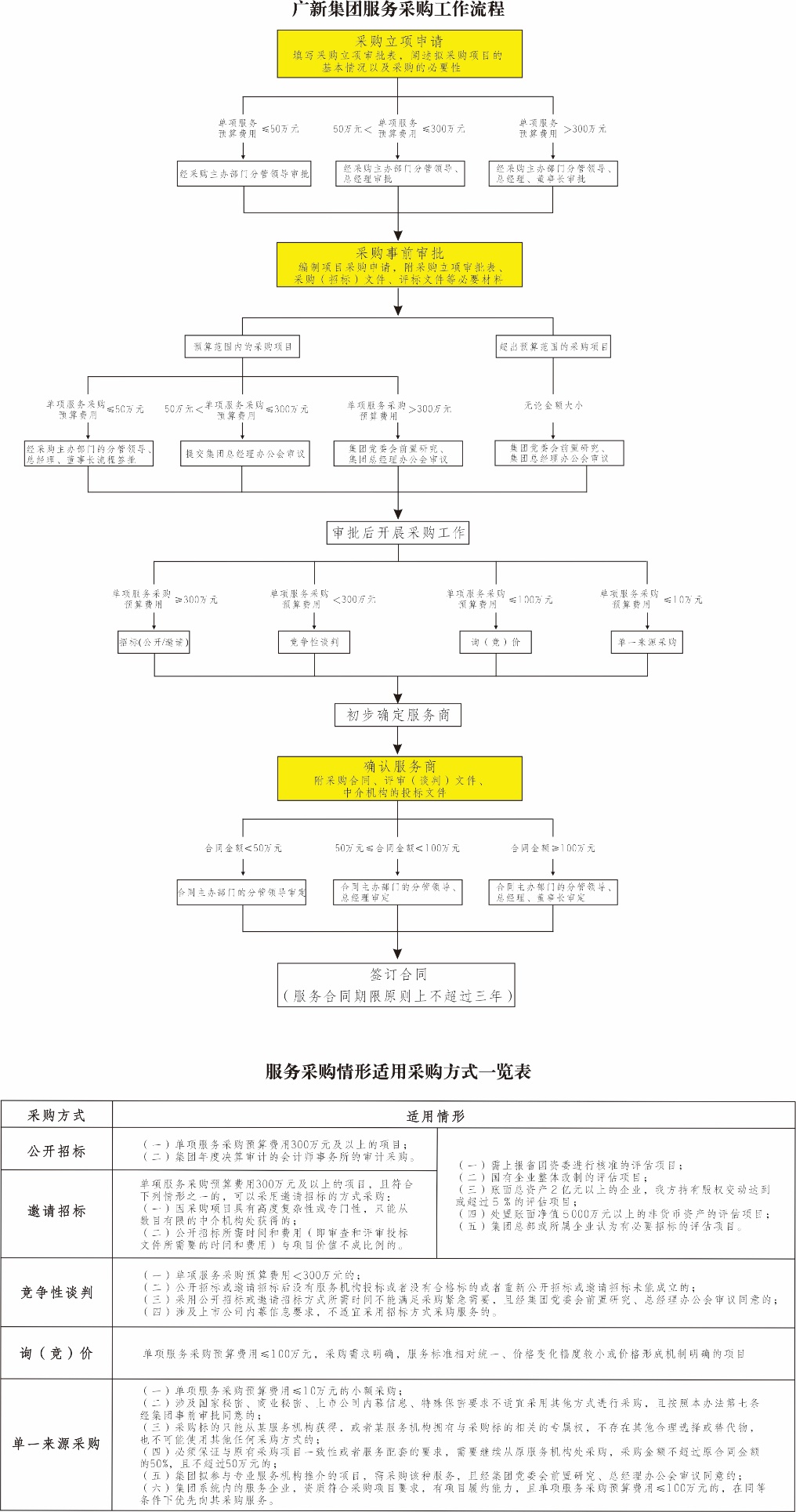 1.单项服务采购预算费用≤50万元的,经采购主办部门的分管领导、总经理、董事长流程签批;